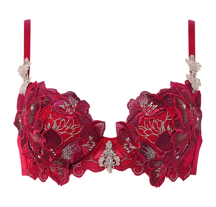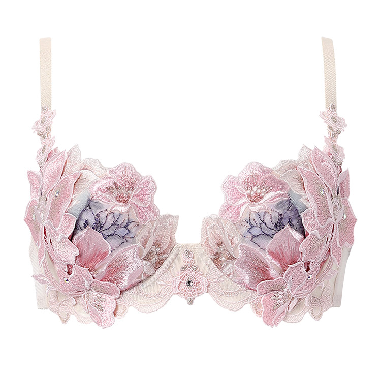 品番:BTJ429 ●くっきりと深い谷間を バストボリュームを脇から中央に寄せ、きれいな谷間をつくるプッシュアップタイプ ・レースとアップリケにはラメ糸を使用 ・カップはプリントレースを使用(REカラーをのぞく) ・前中心とカップのアップリケにはスワロフスキー・クリスタルを使用 ・アップリケはアネモネの花をイメージ <カラー> BE、KO、RE、TU <サイズ> B・Cカップ:¥16,940 (税込) D~Fカップ:¥17,820(税込) G~Iカップ:¥18,700(税込) <ホック> 後ろホック B・Cカップ:ホック1段2調節 D~Iカップ:ホック2段2調節 <パッド> なし(パッド受けあり) <ストラップ> 取り外し不可 |