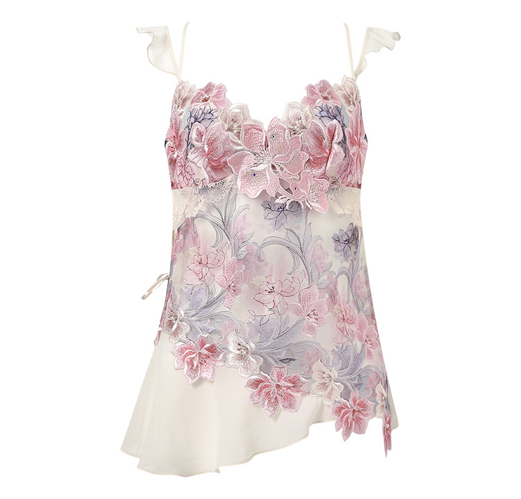 <店舗限定商品> アール・ヌーヴォーを代表するフランスの芸術家「エミール・ガレ」の作品から着想を得たコレクション。 アール・ヌーヴォーの特徴である自然をモチーフとした曲線的デザインを取り入れ、ガラス作品のような透明感を表現。 遊びごころのあるキャミソールは、サルートファンなら見逃せません。 |