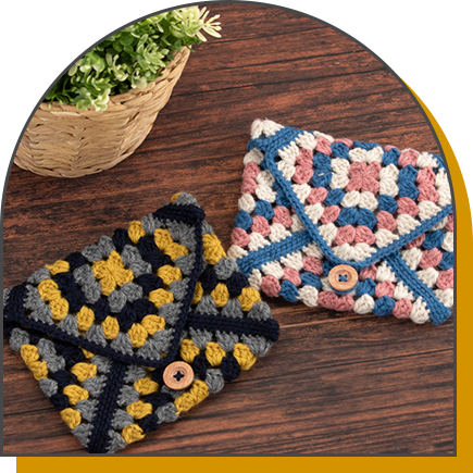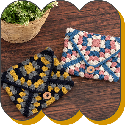 グラニーモチーフのポーチかぎ針編み 編み図あり ≫ -