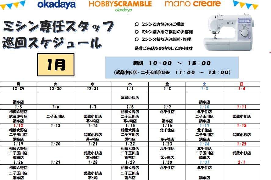●オカダヤのミシン専任スタッフが各店を巡回してご案内