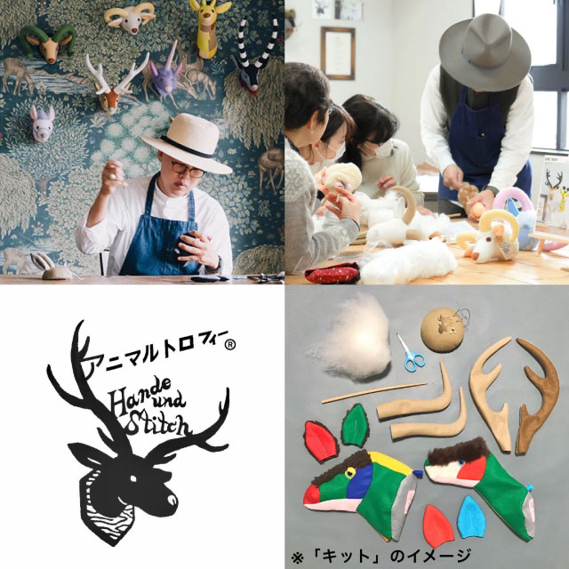 ●講師紹介 花村一晃 『アニマルトロフィー』作家・花村一晃(ハナムラカズアキ) 1981年岐阜県大垣市出身。 大阪芸術大学工芸学科テキスタイルデザインコース、文化服装学院二部服装科(夜間)を卒業。 衣装製作、アパレルメーカーを経て渡独。ドイツ(ハンブルグ)に滞在中に古いシュタイフのぬいぐるみ・ハンティングトロフィーにインスピレーションを受け、日本から持ってきた着物の古市で「アニマルトロフィー」の「シカ」を作ったのが始まり。 2011年帰国後、自身のブランド”Hande und Stitch”(ハンド ウンド ステッチ)を立ち上げる。 『minneハンドメイド大賞2017』グランプリ受賞。著書本『フェルトでつくるアニマルトロフィー』(誠文堂新光社)発売中。各地で「ワークショップ」や「ポップアップ」を開催し、岐阜県にアトリエを構え活動を続けている。 ▼SNSアカウント