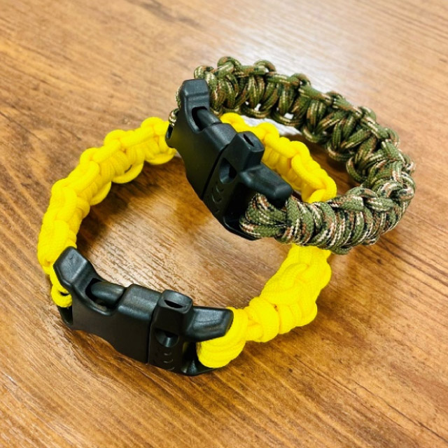 ホイッスル付きのブレスレット!簡単にほどけて強力な紐になります。