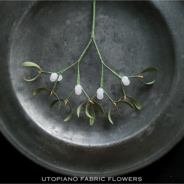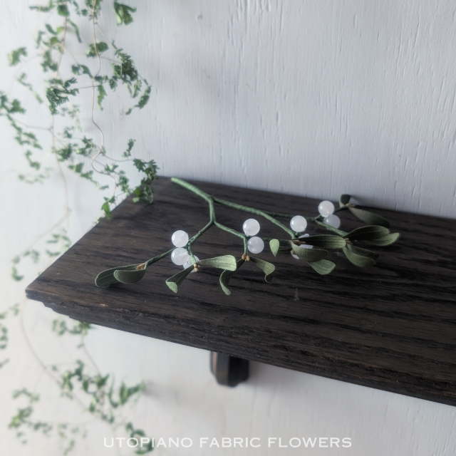 クリスマスが近くなると、ドアや壁にヤドリギの枝を飾りたくなります。 生花のヤドリギもだいぶん手に入りやすくなってきましたが、飾っているうちに節から折れてしまったり、実が落ちてしまったり。 生花は水に生けて、ドアには布花の西洋ヤドリギを飾ってみませんか?