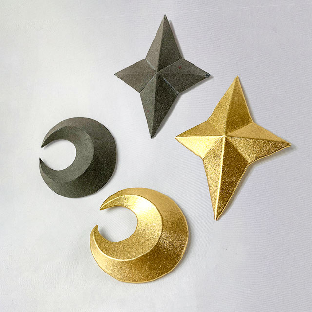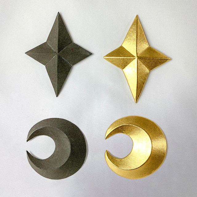 月と星のような角ばった小さい立体物の型紙を作ります。 様々な装飾・武器に応用することが可能です。 また仕上がった型紙を使って、実際にサンペルカで胴体パーツを組み上げます。 立体物の型紙の作り方をメインに、造形の基礎となるサンペルカやカッター、Gボンドの使い方も学ぶことができます。 <学べる主な内容> ・シンメトリーや角ばった凹凸がある立体の型紙の作り方 ・カーブやフリーハンドの線がある立体の型紙の作り方 ・カッターの練習と使い方 ・切り出しの使い分け方 ・ボンドの使い方 ★型紙・余ったサンペルカ・刷毛はお持ち帰りいただけます。