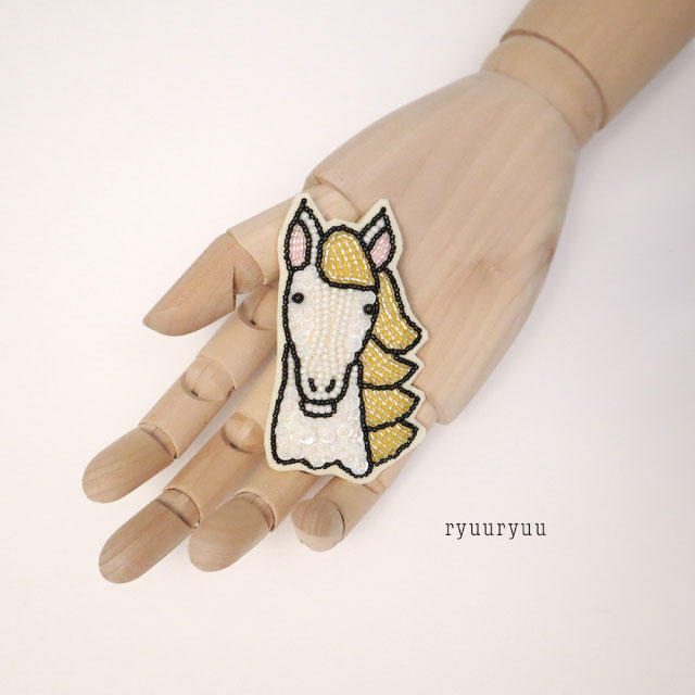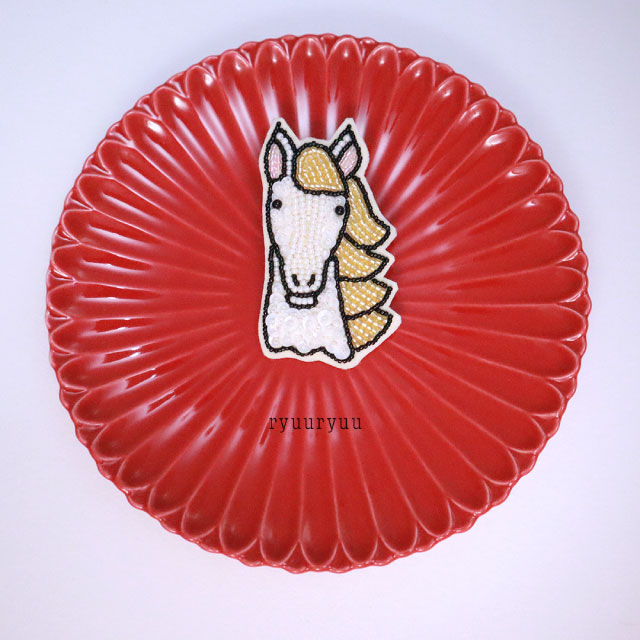 来年の干支の馬モチーフのブローチのワークショップです。 干支のものを身につけたり飾ったりすると縁起が良いそうです。 あらかじめ図案がプリントされた布に刺繍をしていただきます。 ワークショップでは見本以外のお色を選んでいただくこともできます。 (選べる色は当日のお楽しみです。) 手刺繍によるビーズの縫い方などが学べます。 ブローチに仕立てる縫い方も学べます。 (流流独自の手法が含まれることもあります)