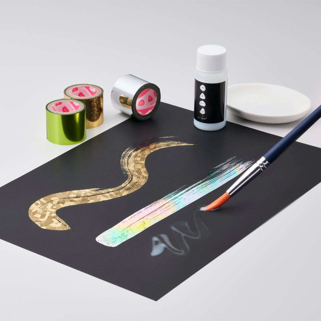 ウチハクは、創業160年の箔メーカー「村田金箔」が開発した、糊の粘着だけで箔押しを可能にした新しい文房具です。