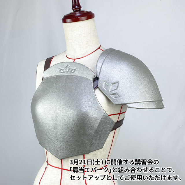 サンペルカを使用し、生地貼り仕上げで「胸当て」パーツを製作します。 基本的なカッターの使い方やGボンドの扱いはもちろん、模様の入れ方や曲面への生地貼りまで学べる内容です。 カッター操作などの練習時間もしっかり設けていますので、初心者の方も安心してご参加いただけます。 <学べる内容> ・カッター、Gボンドの基本的な使い方 ・サンペルカの切り方 ・模様のつけ方 ・段差の作り方 ・生地貼りのやり方 ・当て切りの方法 ・布の端処理の方法 本パーツは、3月21日(土)に開催する講習会の「肩当てパーツ」と組み合わせることで、セットアップとしてご使用いただけます。