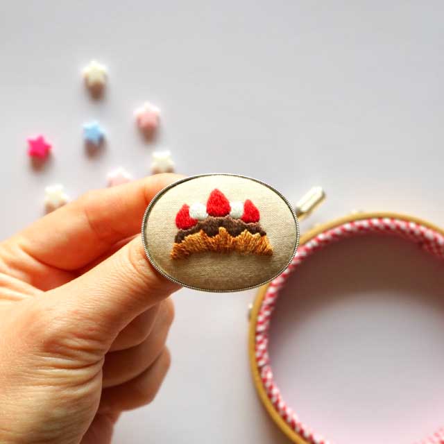 クロワッサンサンドのモチーフを刺繍し、ブローチに仕立てます。 刺繍初心者さんでも対面で詳しくお教えしますので安心して参加していただけます。 手刺繍の基本的なステッチが学べて他のモチーフにも応用できます! 仕上がりサイズは4cm×3cmです