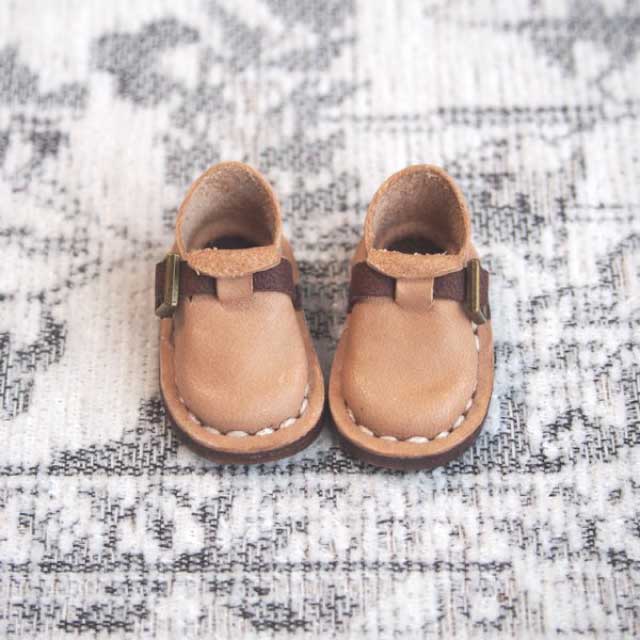一枚の革から靴作りを体験頂けます。(パーツのカット、穴あけ、縫い、成型作業) はじめての方でも靴作りを通してレザークラフトを楽しんで頂けますよう、準備しておりますので、安心してご参加下さいませ。 足のサイズ:約3.5㎝(ピュアニーモS、オビツ24着用可能) 本革使用/カラー:ミルクティー