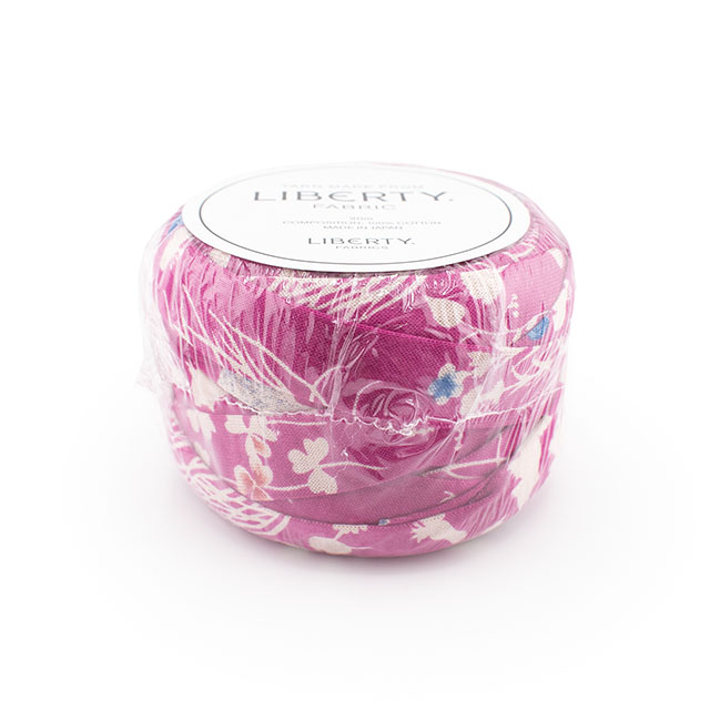リバティ・ファブリックスのシェラトンジャージーを約3cm幅に裁断し、コットンヤーンに生まれ変わりました。