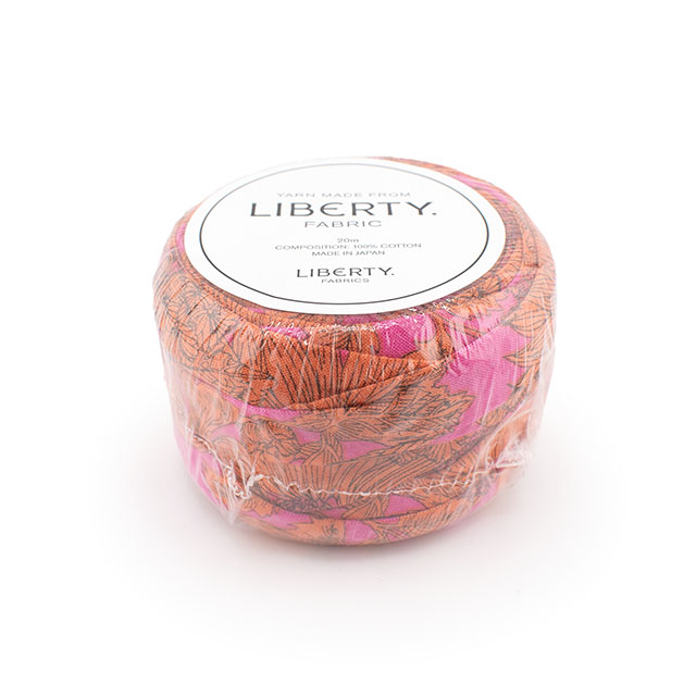 リバティ・ファブリックスのシェラトンジャージーを約3cm幅に裁断し、コットンヤーンに生まれ変わりました。