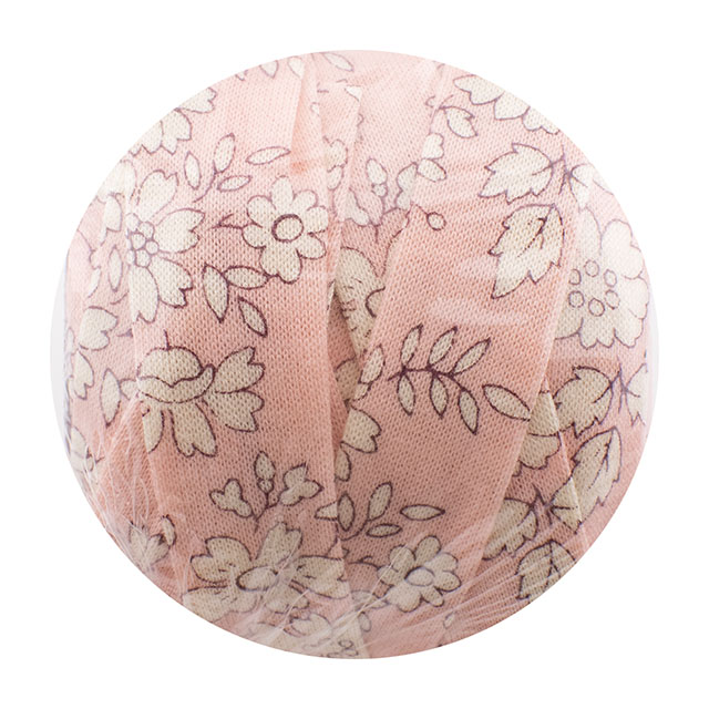 リバティ・ファブリックスのシェラトンジャージーを約3cm幅に裁断し、コットンヤーンに生まれ変わりました。
