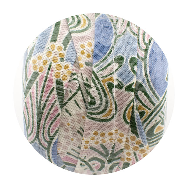 生地を裁断して糸状にしているため、柄の出方はそれぞれ異なります。
