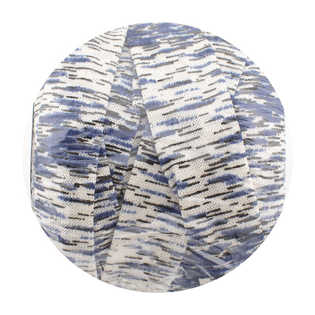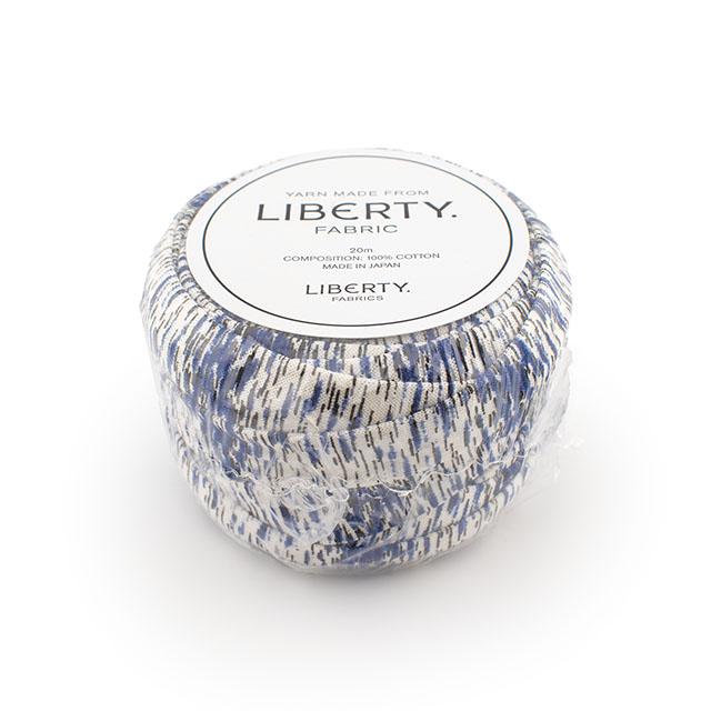 リバティ・ファブリックスのシェラトンジャージーを約3cm幅に裁断し、コットンヤーンに生まれ変わりました。