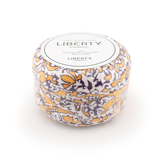 リバティ・ファブリックスのシェラトンジャージーを約3cm幅に裁断し、コットンヤーンに生まれ変わりました。