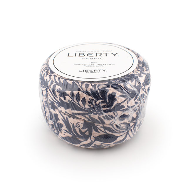 リバティ・ファブリックスのシェラトンジャージーを約3cm幅に裁断し、コットンヤーンに生まれ変わりました。