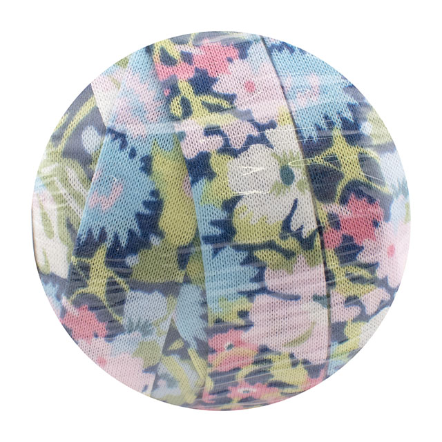 リバティ・ファブリックスのシェラトンジャージーを約3cm幅に裁断し、コットンヤーンに生まれ変わりました。