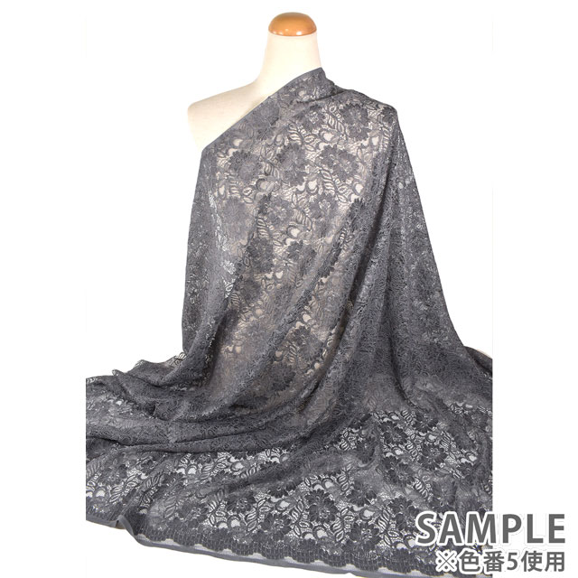 エレガントな花柄のラッセルレースに、細い糸で刺繍が施された華やかなコードレース生地です。
