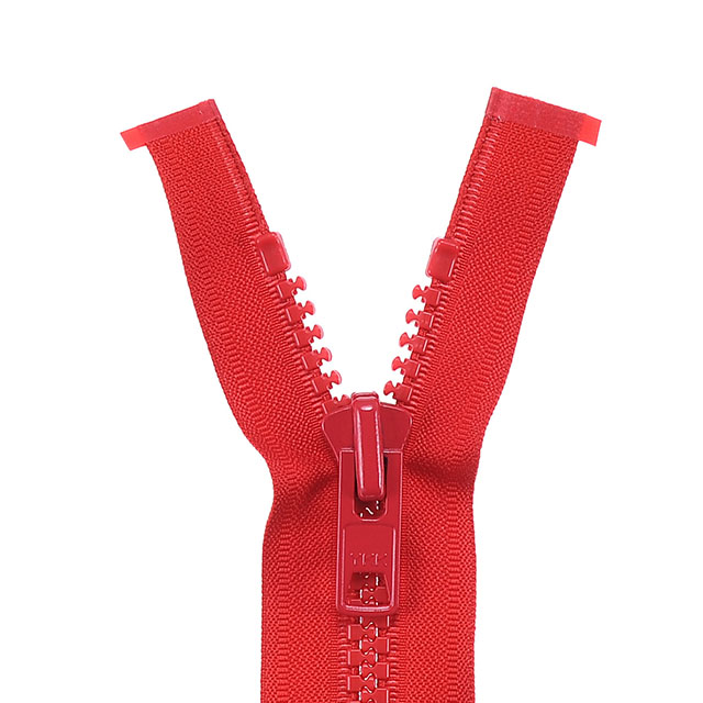 エレメントが樹脂でできている逆開オープンファスナーです。同サイズの金属ファスナーに比べ軽量です。
