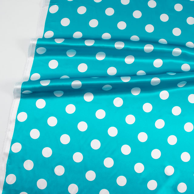 直径約2cmの水玉模様のプリントサテン生地です。