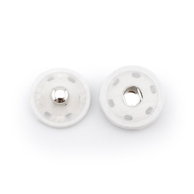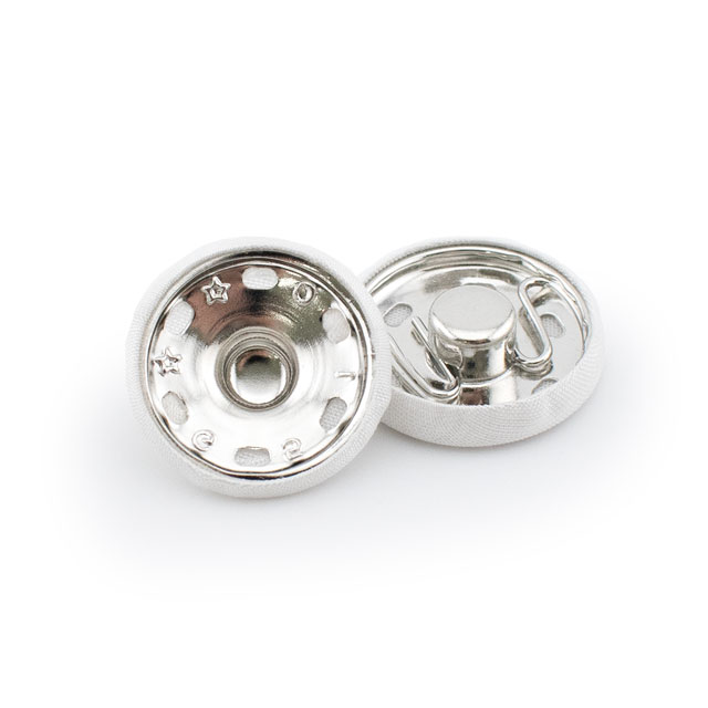 衣服をとめる用途で使われる、生地で包んだスナップボタンです。