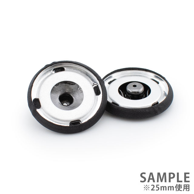 衣服をとめる用途で使われる、生地で包んだスナップボタンです。