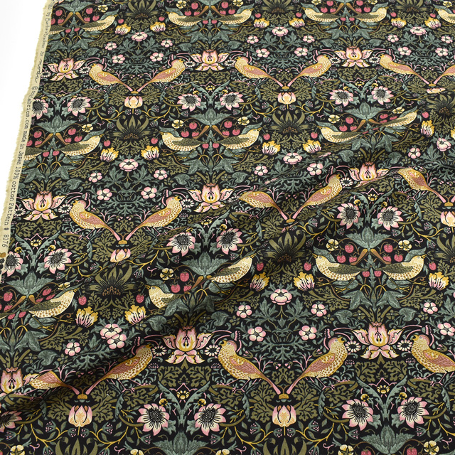 ウィリアム・モリスのテキスタイルの中でも特に人気の高い「いちご泥棒」のデザインがシーチングにプリントされています。