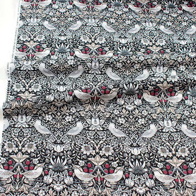 ウィリアム・モリスのテキスタイルの中でも特に人気の高い「いちご泥棒」のデザインがシーチングにプリントされています。