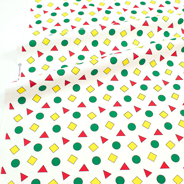 生地 オックスプリント まるさんかくしかく(HSK810) A.オフ 09Ae99_