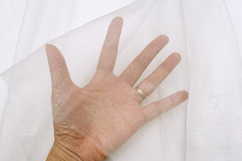 光の当たる角度でほのかに色味が変わって見える、シャンブレー(玉虫)タイプのオーガンジーです。