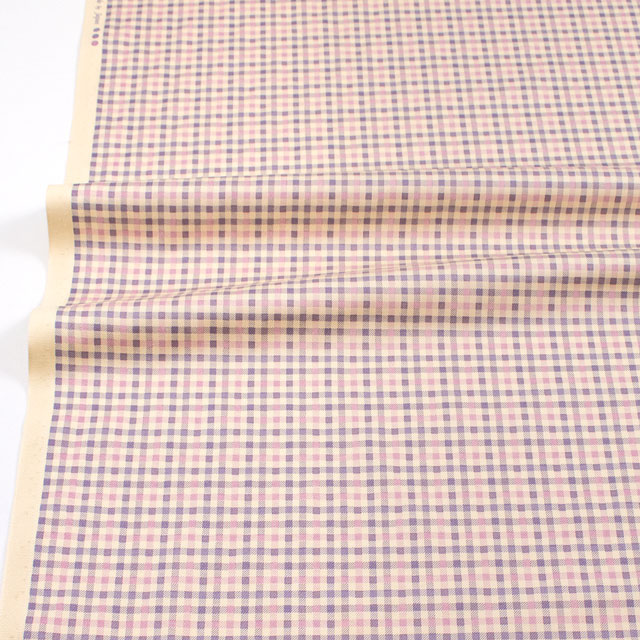 生地 ツイルプリント ギンガムチェック柄(88320) 4-8.アイボリー×ラベンダー 09Bk22_