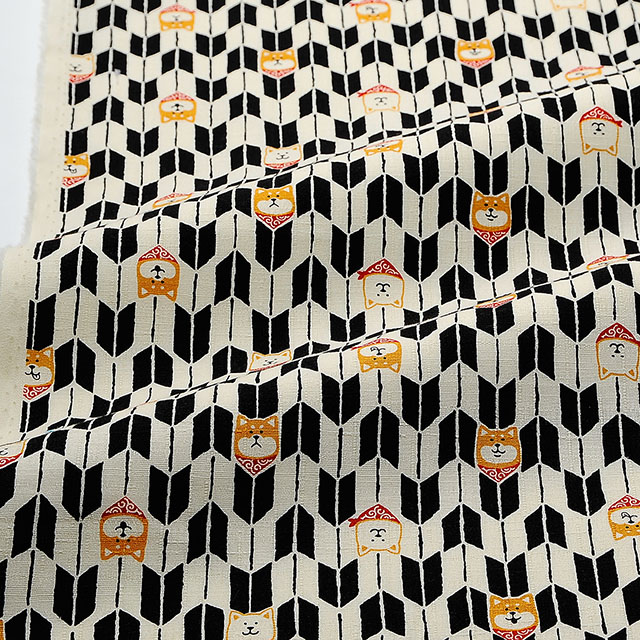 ドビー織りによる独特な凹凸感が特徴の、人気の柴犬と矢絣柄です。