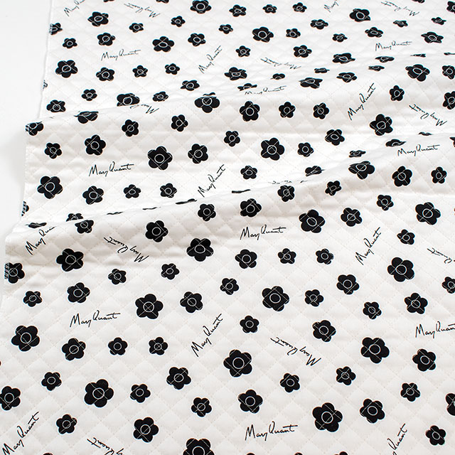 マリークヮントのブランドアイコンを一面にちりばめたキルト生地です。