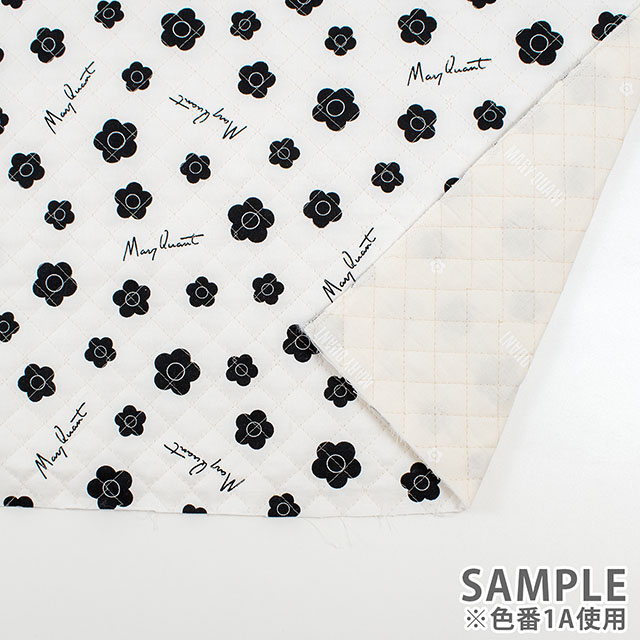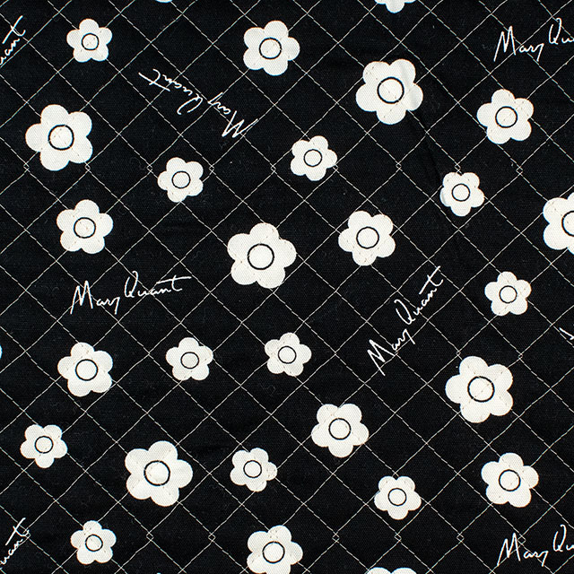 マリークヮントのブランドアイコンを一面にちりばめたキルト生地です。