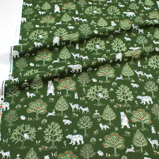 生地 キッズランド 森の動物たち/ポプリン(SP2600H) 3C.カーキ 09Ae99_