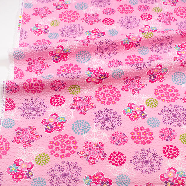 さくらやあじさいなどの花柄がかわいらしい、和柄のリップル生地です。