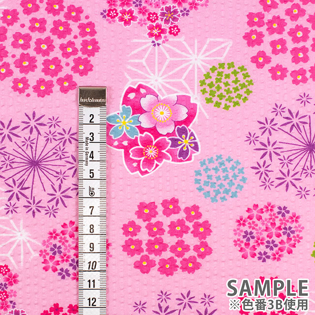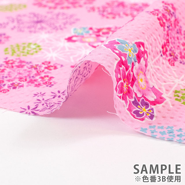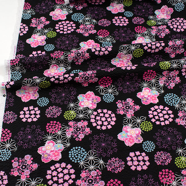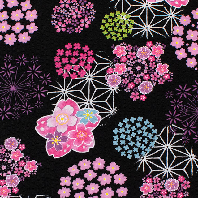 さくらやあじさいなどの花柄がかわいらしい、和柄のリップル生地です。
