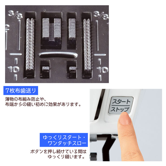 水平送りなので、厚地も薄地もすいすい縫えます。