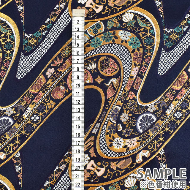 金襴生地 洛レイ四丁2号 流線・模様遊び(5-10578) 紺 09Bh18_