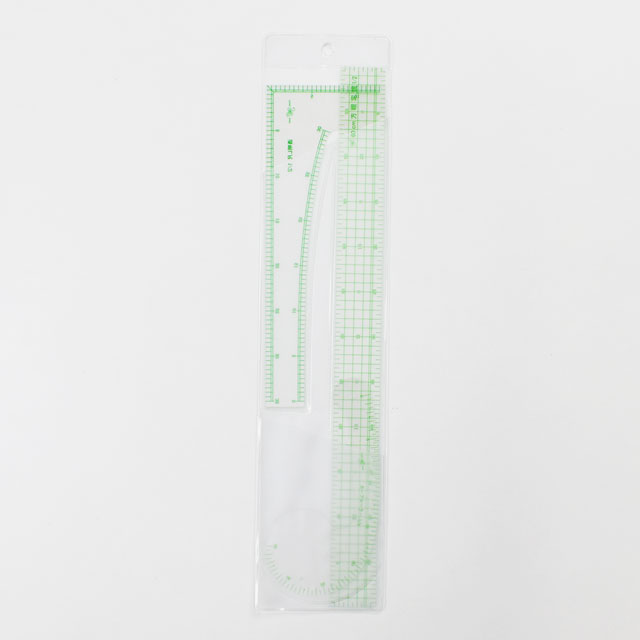 カーブルーラー1/2、方眼定規(60cm)1/2、透明L尺1/2のセットです。