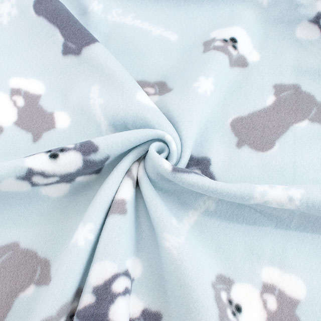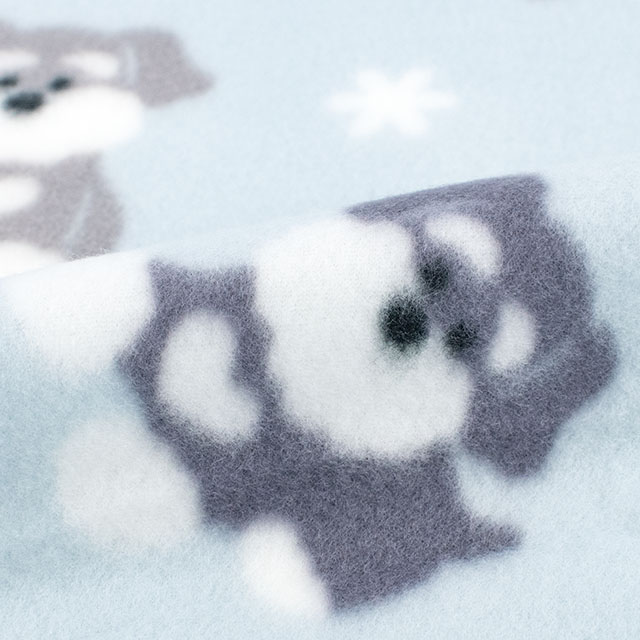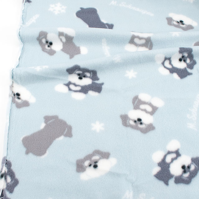 生地 フリースプリント ミニチュアシュナウザー 約140cm幅×150cmカット(75600-1) 1.ライトブルー 14yy88_