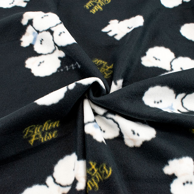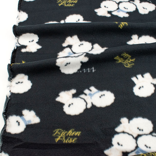 生地 フリースプリント ビションフリーゼ 約140cm幅×150cmカット(75600-1) 2.ブラック 14yy88_