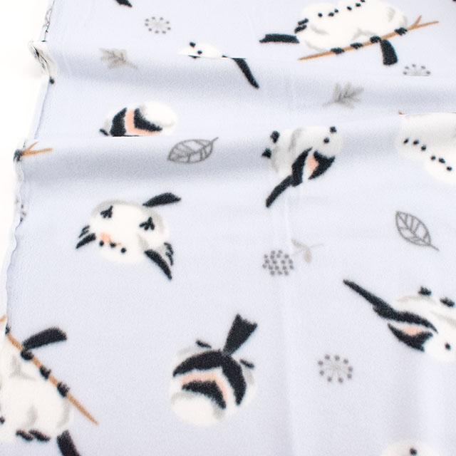生地 フリースプリント シマエナガ 約140cm幅×150cmカット(75600-1) 5.ライトグレー 14yy88_