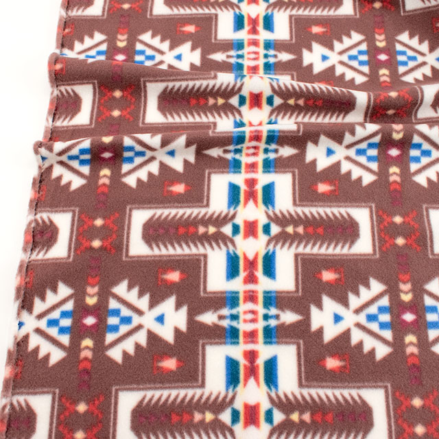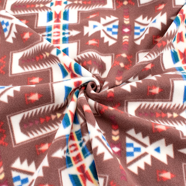 生地 フリースプリント 民族柄 約140cm幅×150cmカット(75600-1) 6.ブラウン 14yy88_