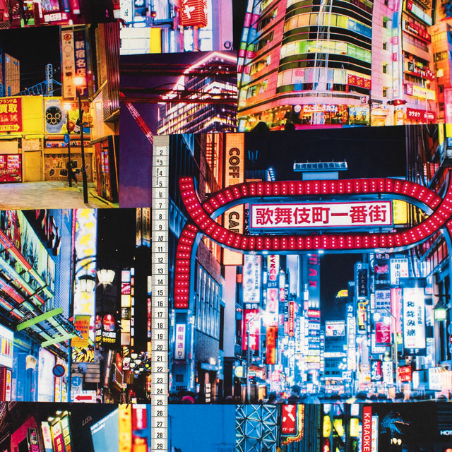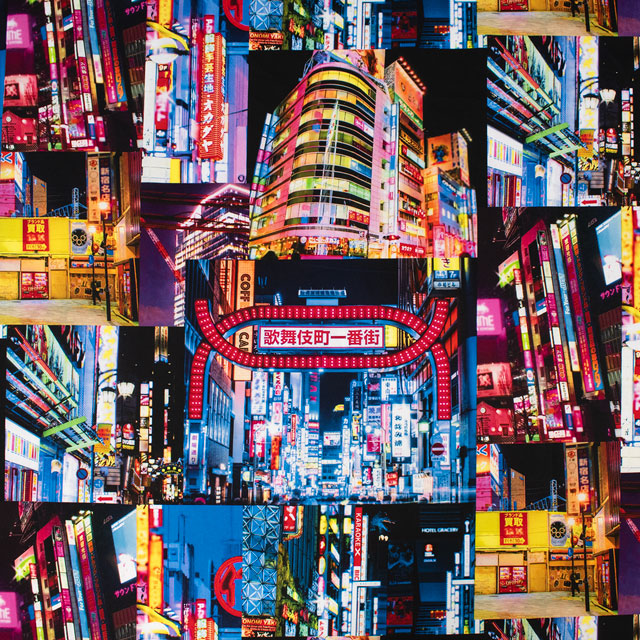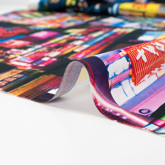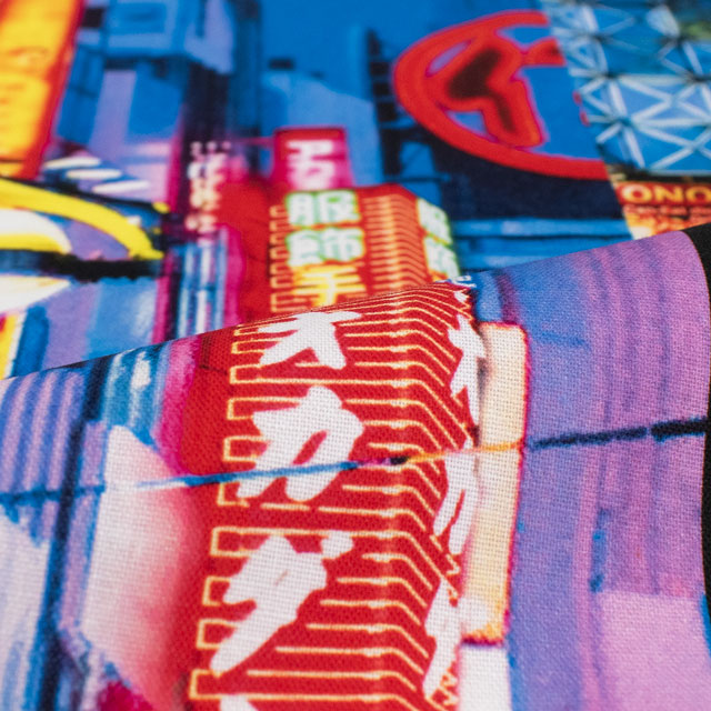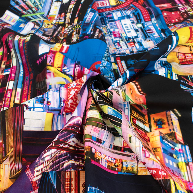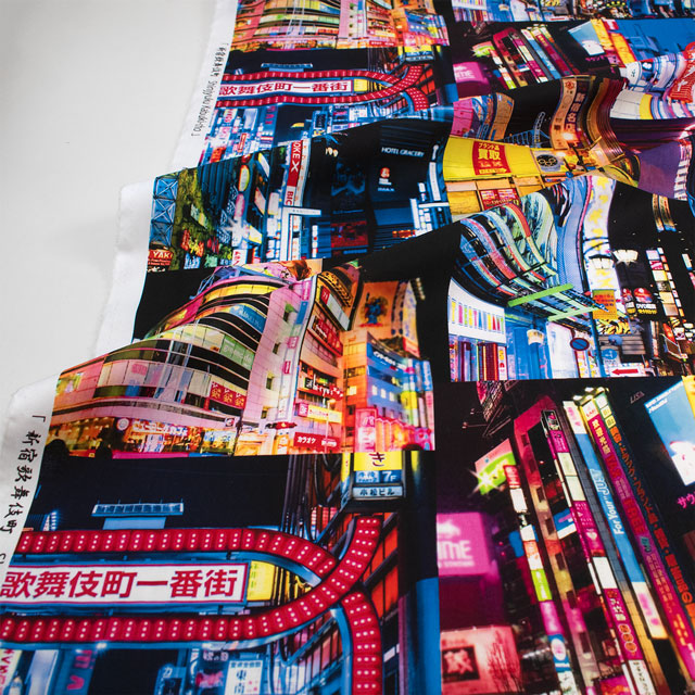 新宿・歌舞伎町の風景がプリントされた、オカダヤオリジナルのリアルなデジタルプリント生地です。