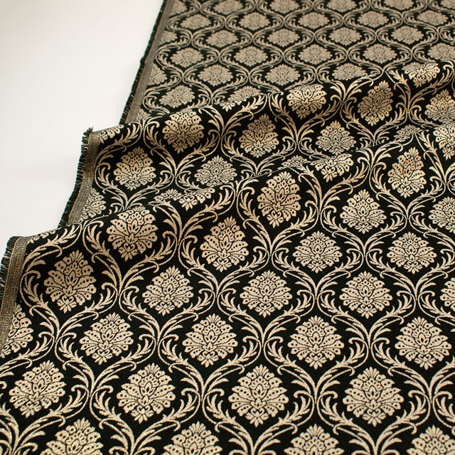 小さめのダマスク柄がラメ糸で全面に描かれたデザインのスペイン製のジャガード