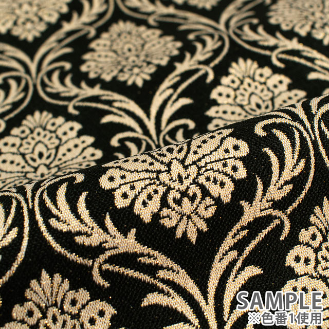 小さめのダマスク柄がラメ糸で全面に描かれた華やかなデザインです。