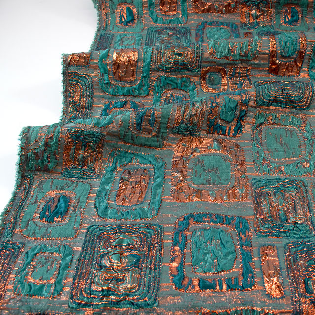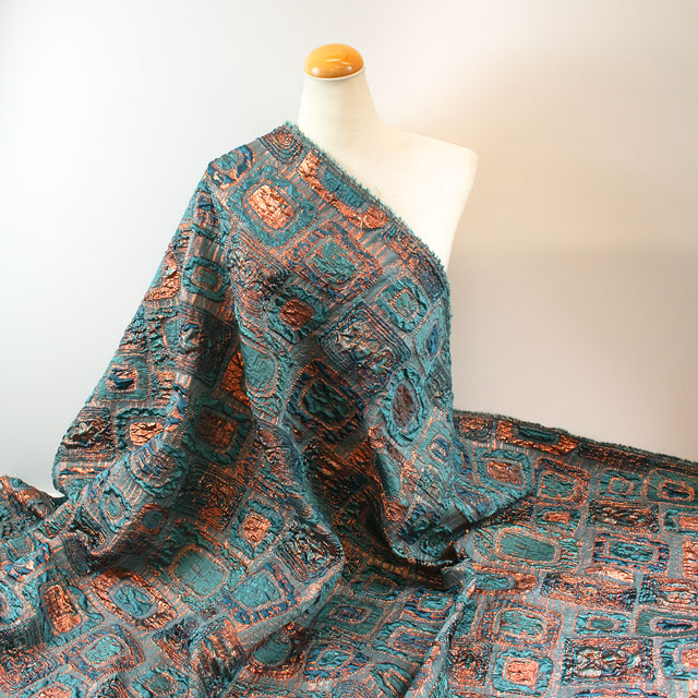 19世紀末のウィーン分離派の作品のように大胆で華やかな色づかいが美しいジャガードです。