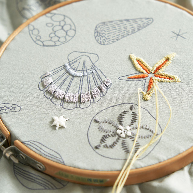 刺繍作家atsumiさんデザインのオリジナル図案、指示書、刺繍に必要な道具がキットになっているので、気軽に始められます。