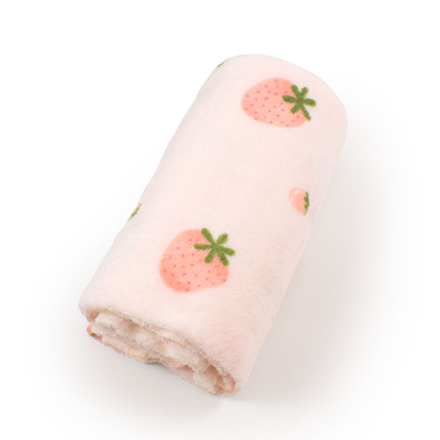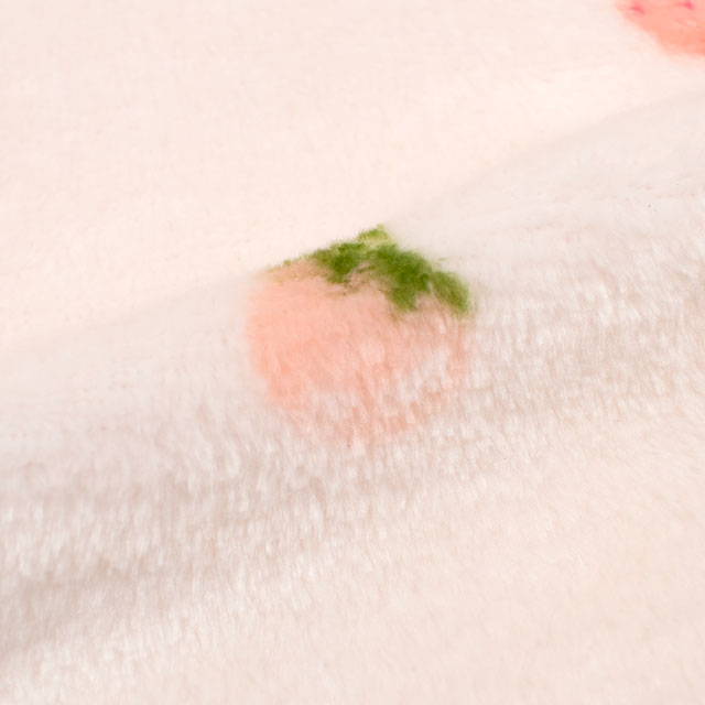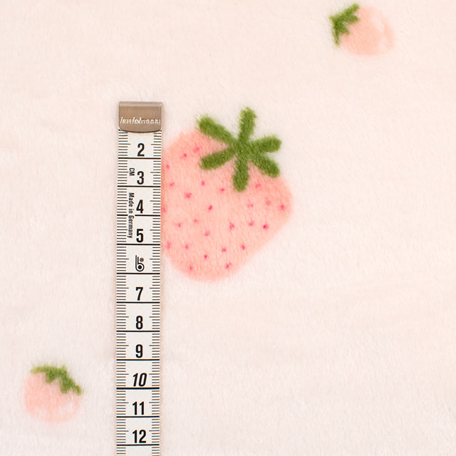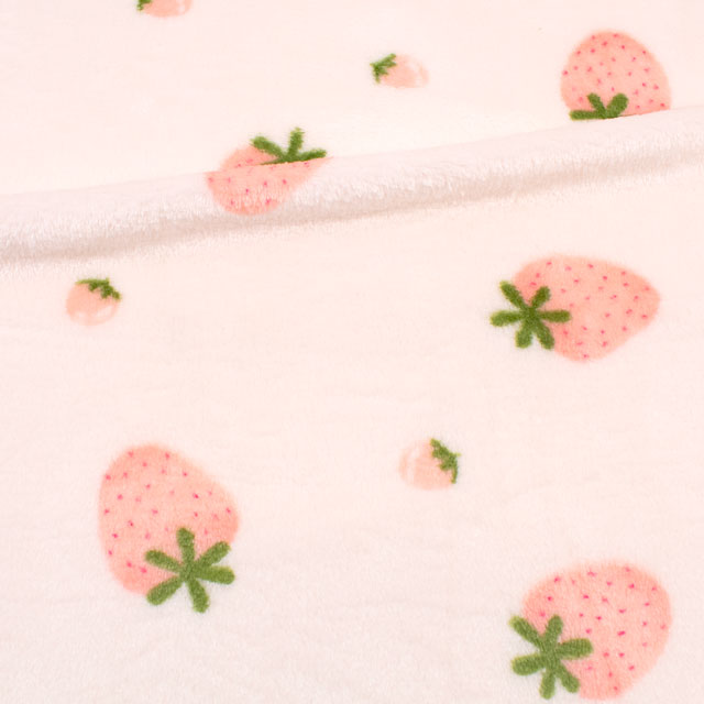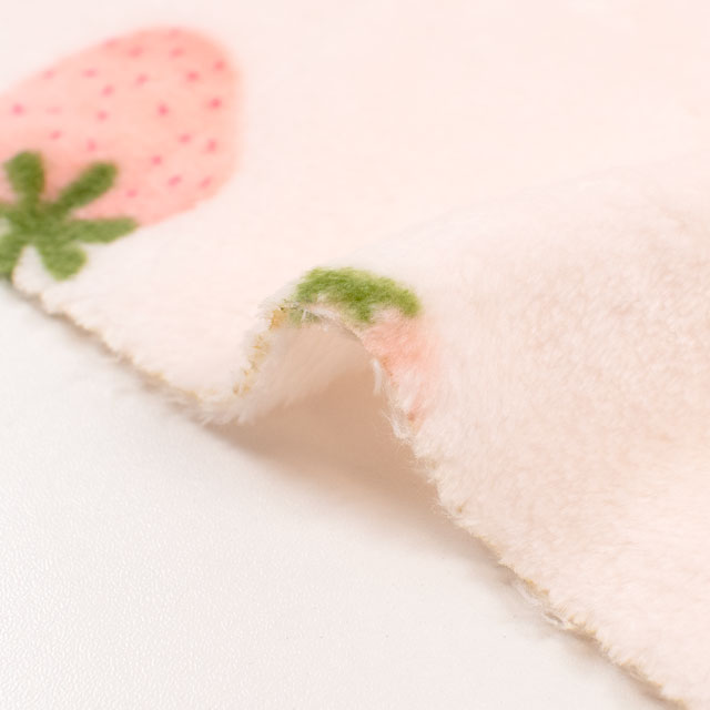 手書きのような可愛らしい、いちご柄の短い毛足のボアファー生地です。